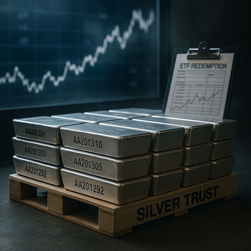 When SLV trades at a small discount to NAV in a fast rise, an AP can buy shares, redeem for metal, and sell that bullion into a tight physical market (or post it as delivery collateral), pocketing the spread. The reverse happens when SLV is at a premium—APs create new shares. These two-way flows are normal and can magnify the movement of metal between vaults and end users. (The mechanics are explicitly described in the SLV prospectus.)